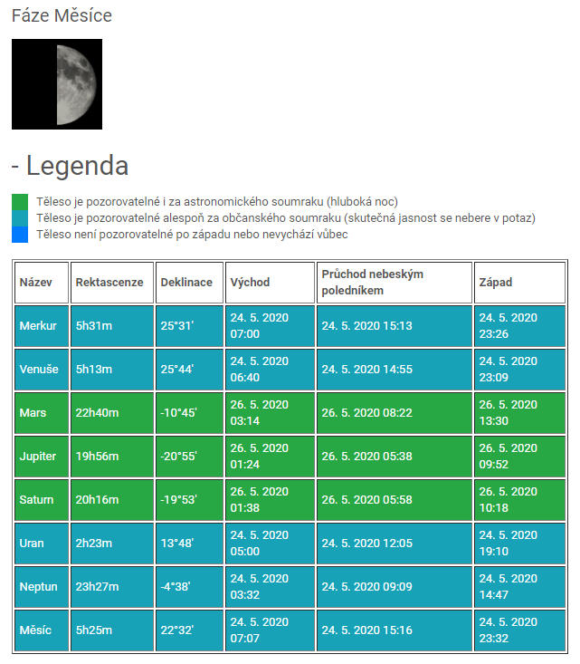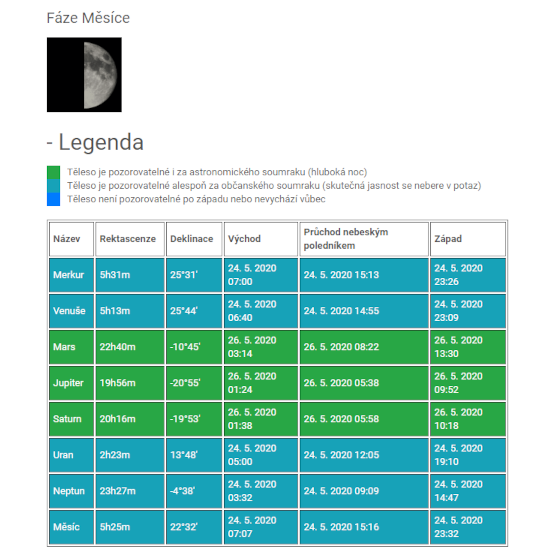 Aplikace pro výpočet poloh planet a fáze měsíce